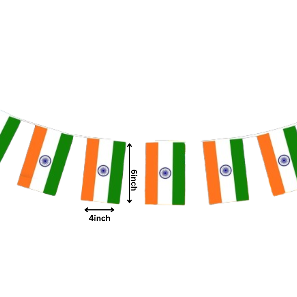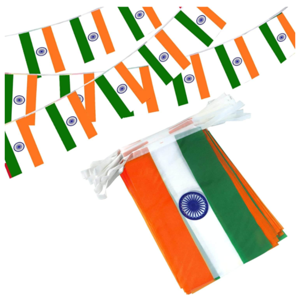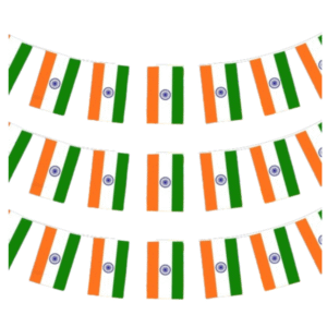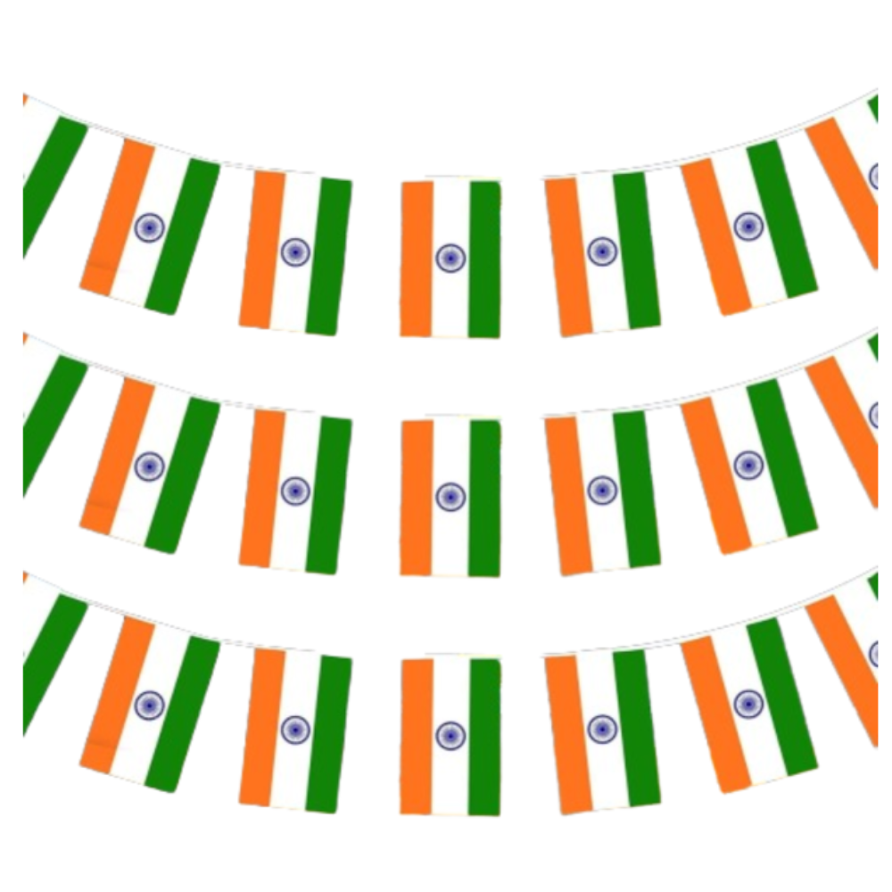 Add a festive and patriotic touch to any event with this India String Flags Pennant Banner, featuring 25 premium 4×6 inch Indian National Flags. Perfect for Independence Day, Republic Day, sports events, school functions, office décor, and community celebrations, this bunting banner is made using high-quality, fade-resistant fabric or polyester material. Easy to hang and lightweight, it brings vibrant colour and energy to your space indoors or outdoors.