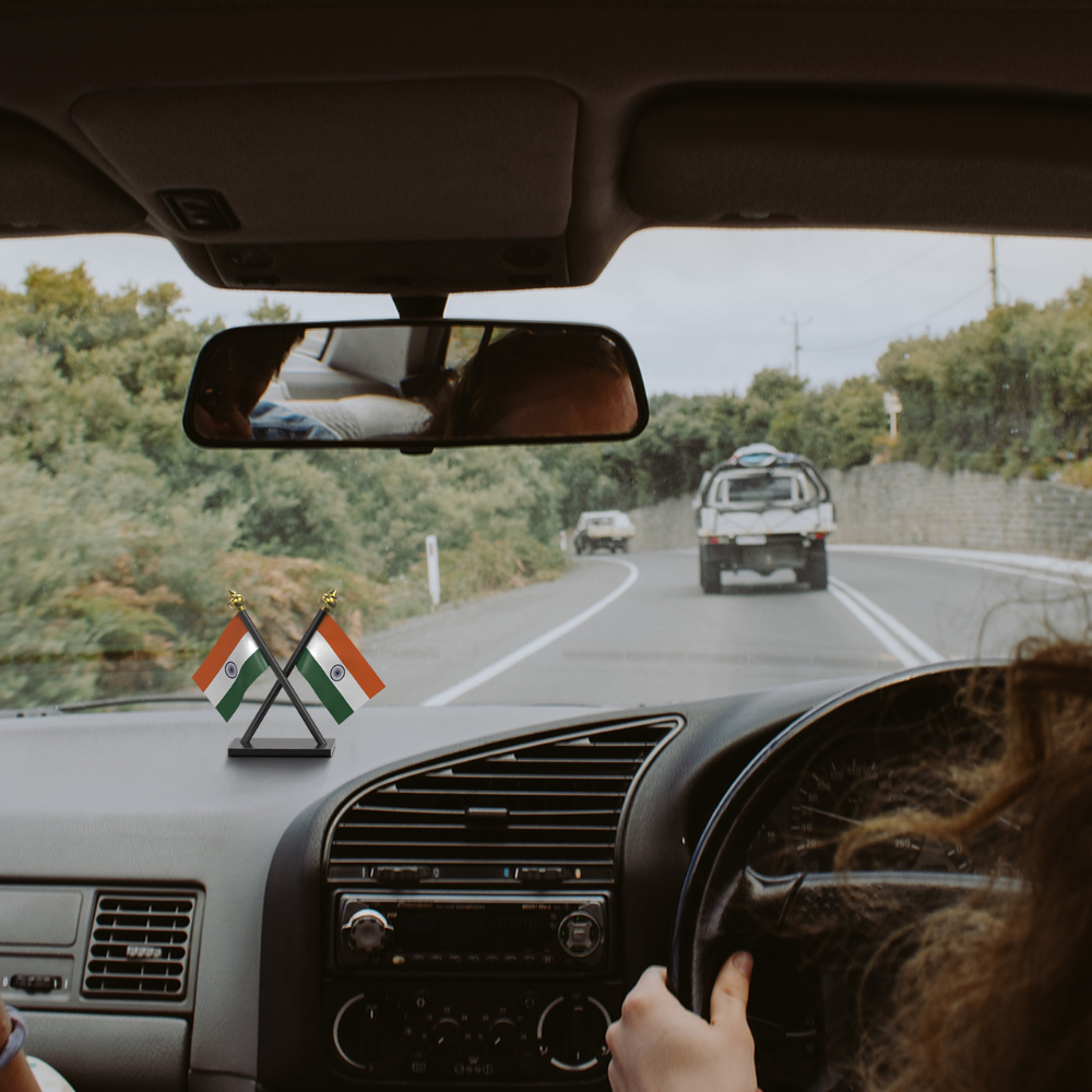 Indian Flag Stand for Car Dashboard – Cross Plastic | Dual Tiranga Flags for Car & Desk Décor